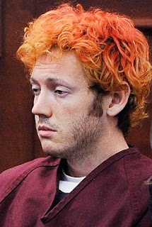 In the court appearance, Holmes seemed in a bizarre trance, nearly Sirhan Sirhan-like. Or Jared Loughner-like. Some felt the genius in the chair was acting. Others saw mind control programming. His hair was dyed an uneven red. The color was faded to a strange pink or an ugly orange in some spots, and, yet, natural brown was visible elsewhere.