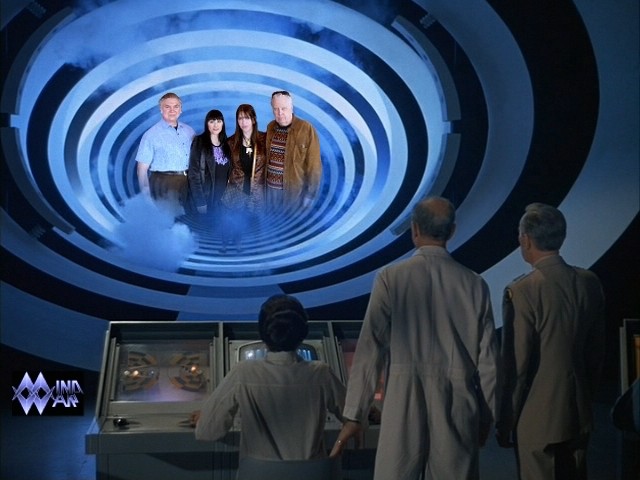 I sent the link to Michael and Lilith Aquino (the 13th Baron Michael and Baroness Lilith of Rachane). Michael thoroughly enjoyed his supposed "odious deeds" and he returned this photo of the four of us taken in Las Vegas. From left: Michael, "sisters" Lilith and Victoria, John.