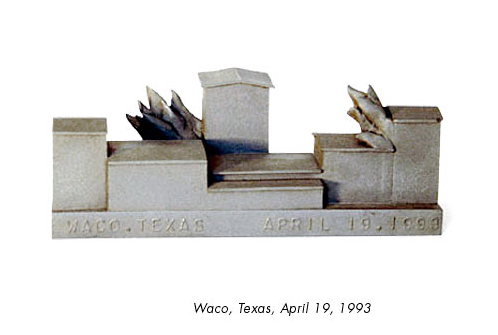 With the "Buildings of Disaster" series (begun in 1997 and continuing today), Constantin Boym and Laurene Leon Boym (i.e. Boym Designs) created replicas of famous and infamous structures where some tragic or terrible events took place. They offered them as "souvenirs" for our time. Souvenirs of human tragedy, even violent events, are a part of our "object-history," as they termed them. Each year crowds of people visit the battlefield of Gettysburg, as well as the site of the car crash which killed Diana, Princess of Wales. Source.
