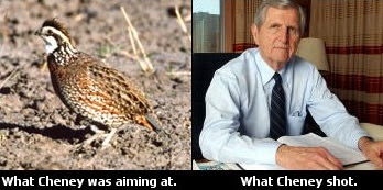 Dick Cheney's hunting accident had occurred while quail hunting in Texas.